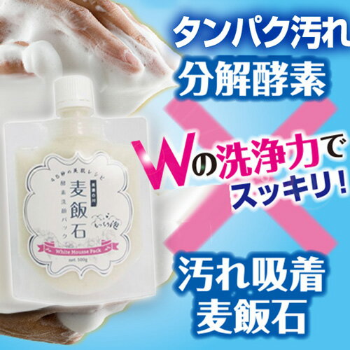 ホワイトムースパック麦飯石 酵素洗顔パック■商品詳細分解酵素プロテアーゼと、吸着成分麦飯石のダブル配合で、毛穴の汚れもきれいにオフ!!メラニンを含むタンパク質で構成される肌の黒ずみや古い角質、毛穴ヨゴレを酵素で分解、活性炭の約2万倍の吸着孔を持つといわれる麦飯石で除去する泡洗顔ムースです。